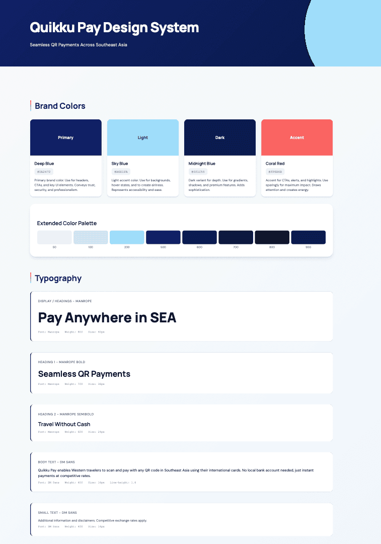 Developed the full visual identity from scratch — logo, colour system, typography, and brand guidelines — establishing Quikku's look before a single screen was designed.